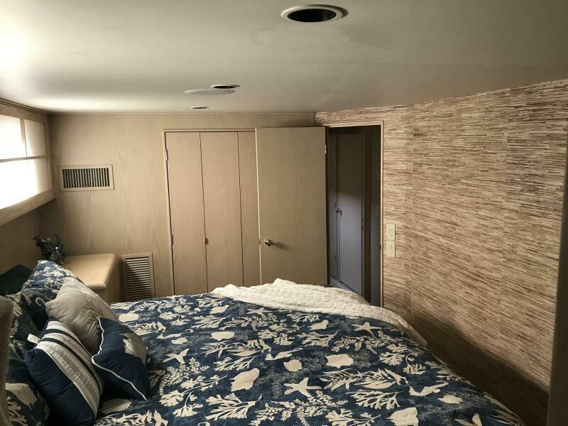 Also in this cabin are four overhead lights, two stereo speakers, new wall papered bulkheads, a dressing mirror, new headliner and a newly carpeted sole.