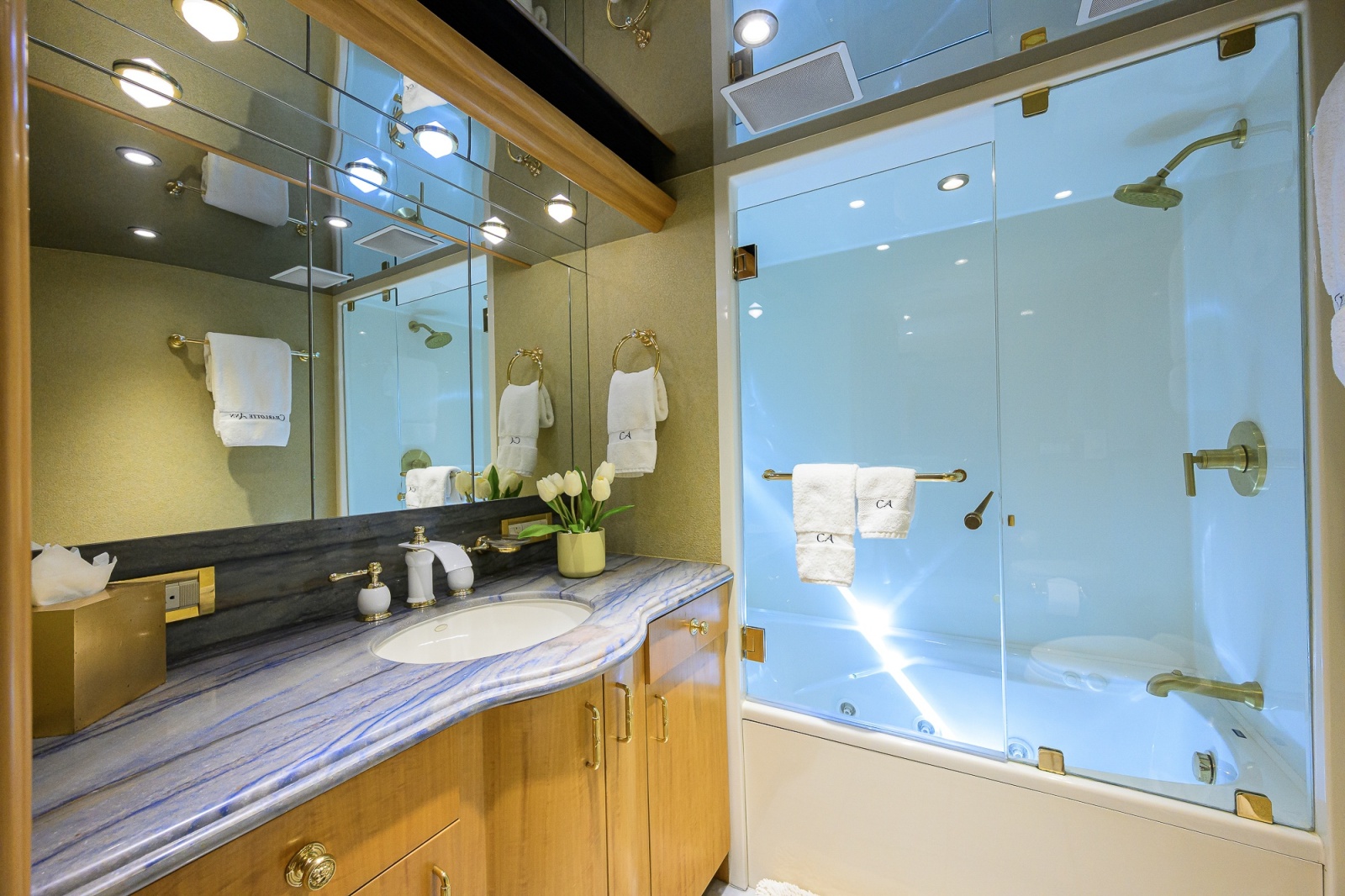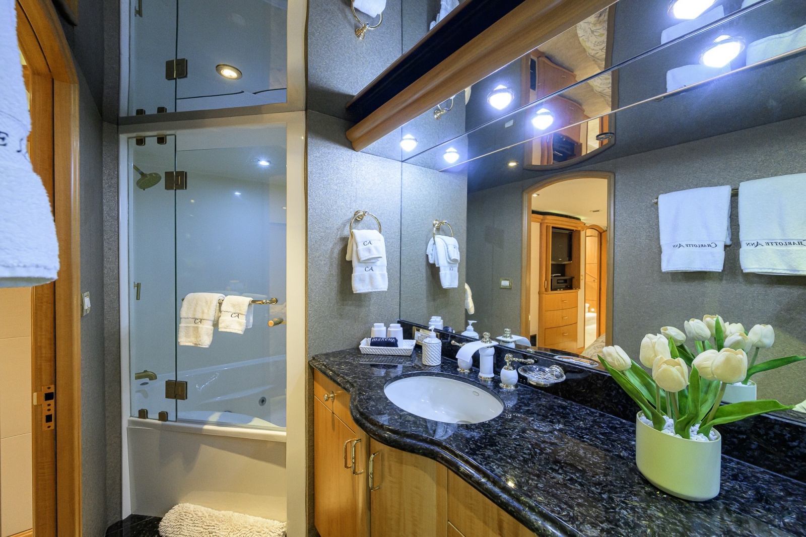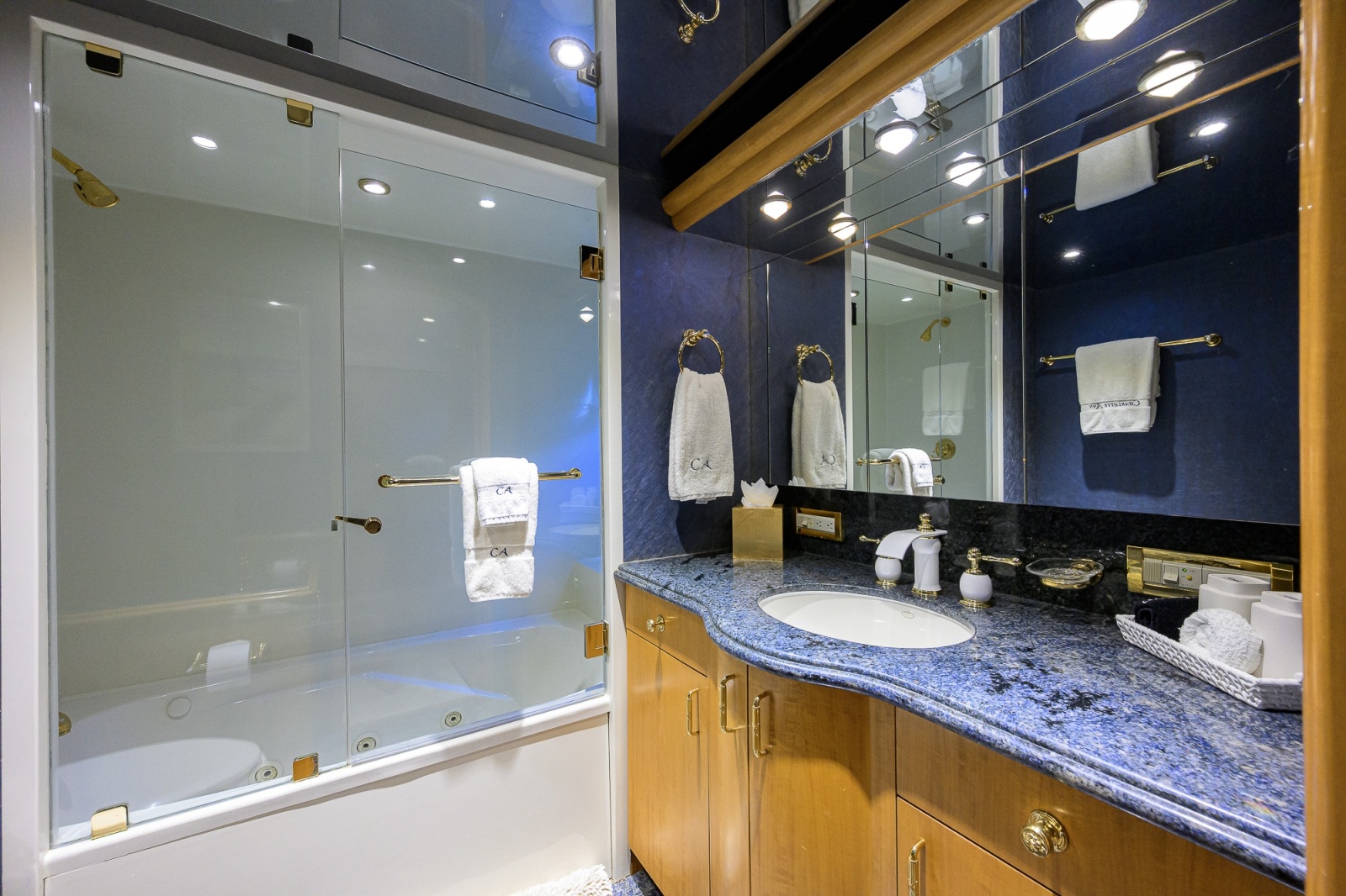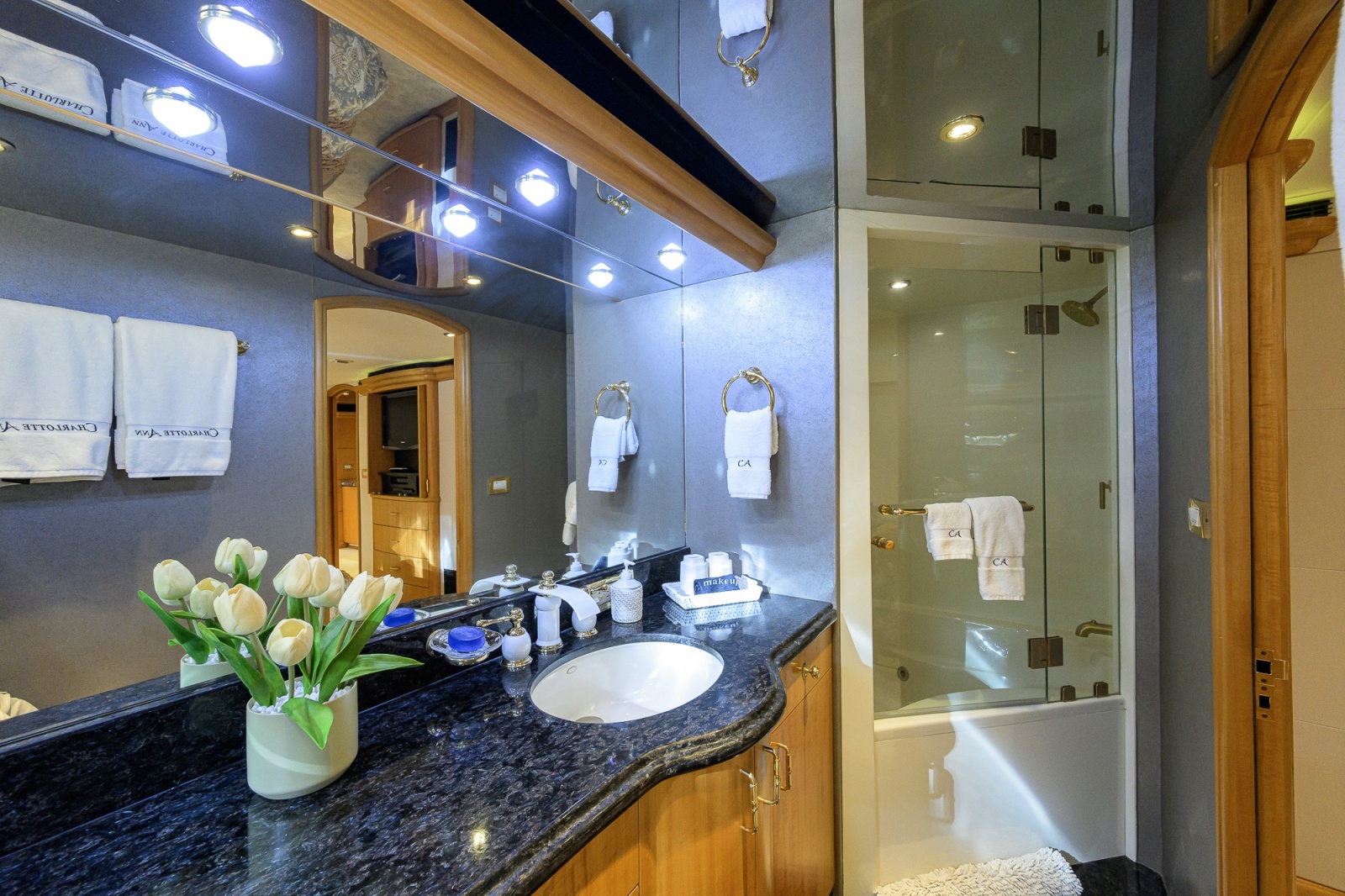 • Main deck powder room is located off starboard main entrance foyer