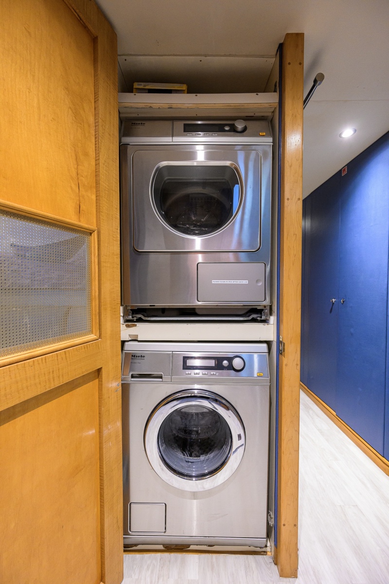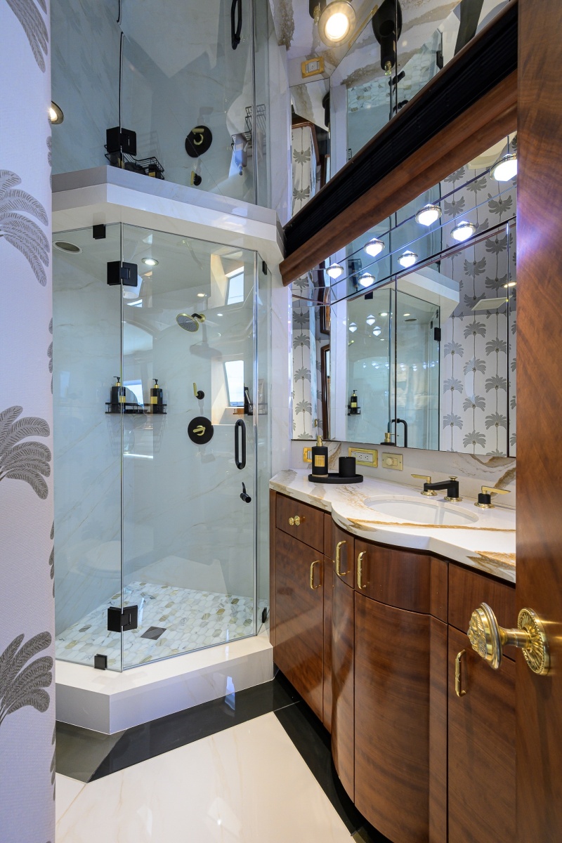 Built to and still in ABS Class, the yacht comprises five staterooms all with ensuite bathrooms, with the full beam, on-deck master suite having dedicated his and hers bathrooms and a large well-appointed office.
