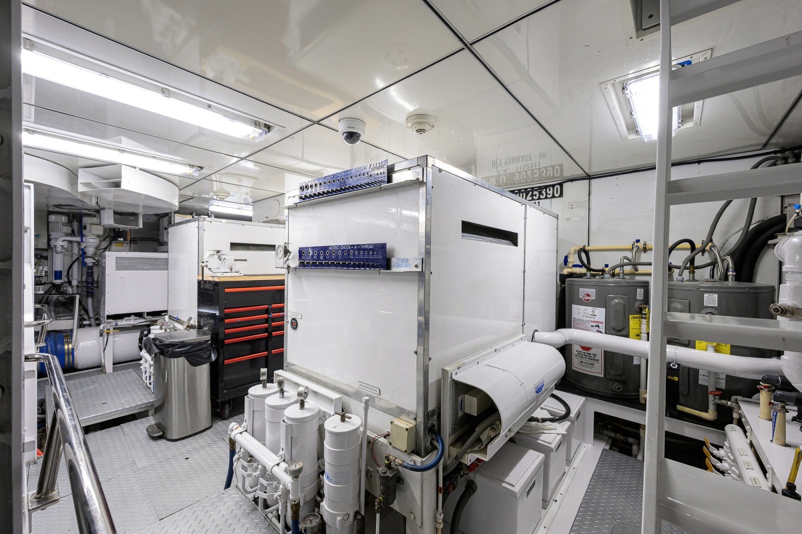 • Lube oil change system with 110V AC pump, manifold, and hoses to all engines & gearboxes - clean and dirty 150 USG each