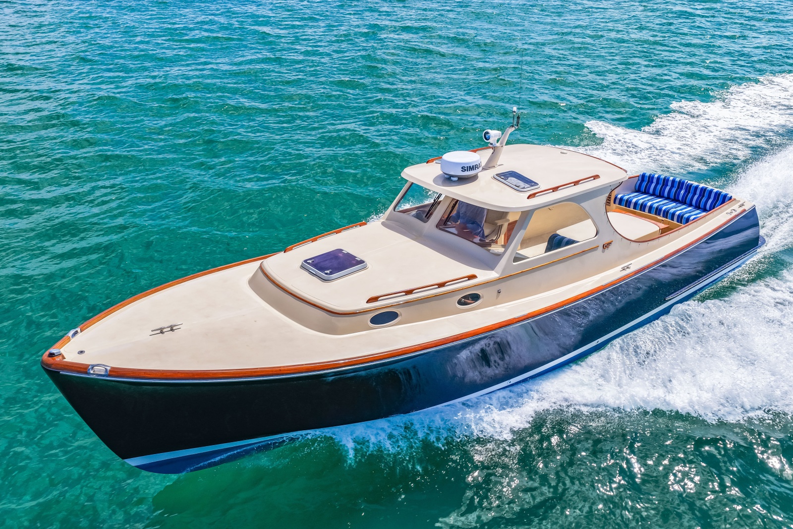 Powered by a single Yanmar diesel paired with Hinckley’s jet drive system, she delivers a smooth, efficient ride with incredibly precise maneuverability thanks to the renowned JetStick® control system.