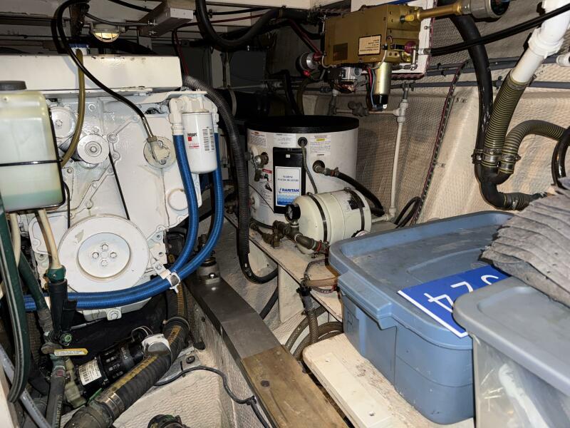 The engine room can be accessed either through a doorway behind the stairs in the aft end of the forward cabin or through lifting panels in the main salon floor. The engine room is nicely laid out with clear access to the main engine, generator, batteries, all through-hulls, and electrical wiring.