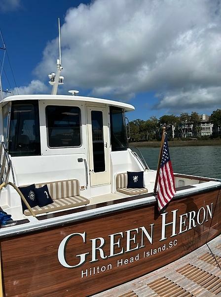 Open the throttles and this yacht truly comes alive. Green Heron handles with confidence and agility, offering spirited performance throughout the RPM range. At a comfortable 2000 RPM, she runs an easy 20 kts while averaging 0.74 NMPG. Her hull design keeps bow rise to a minimum, contributing to a stable, predictable ride.