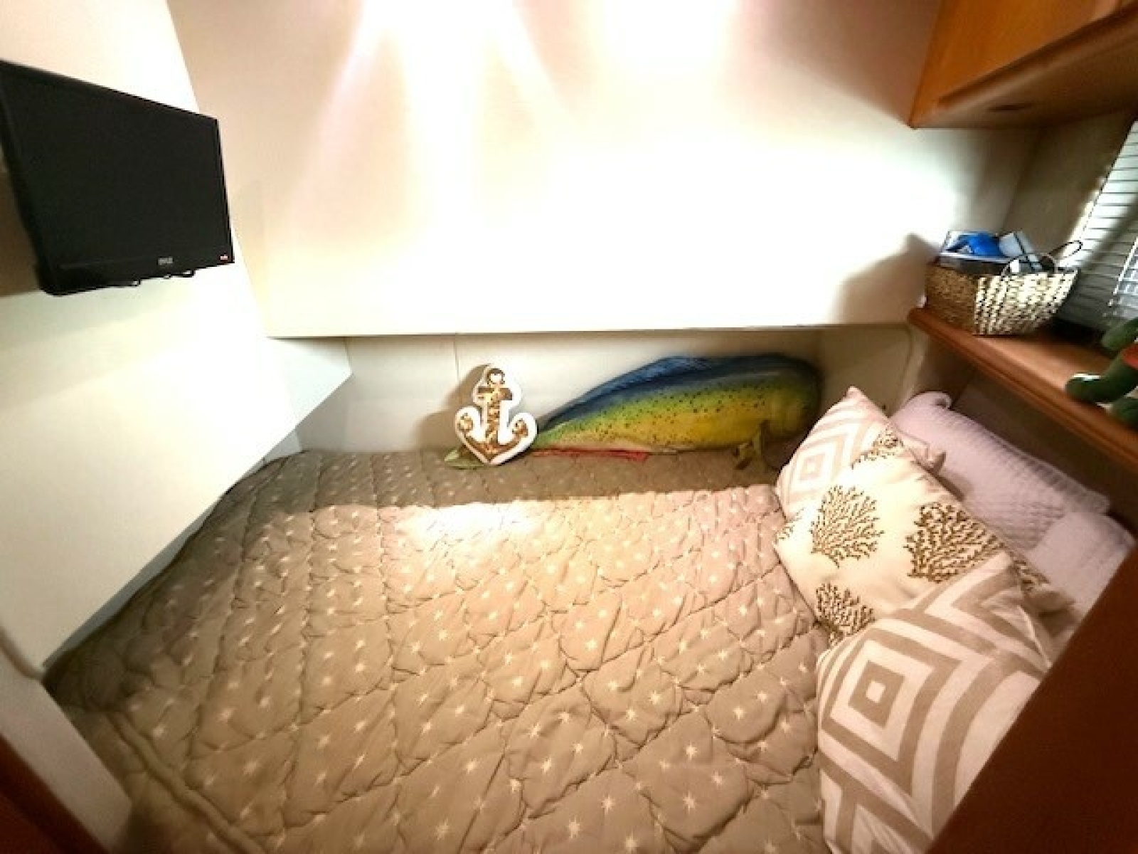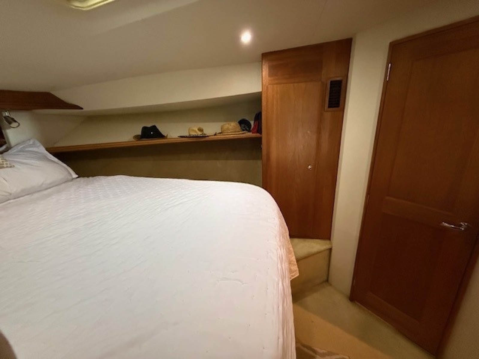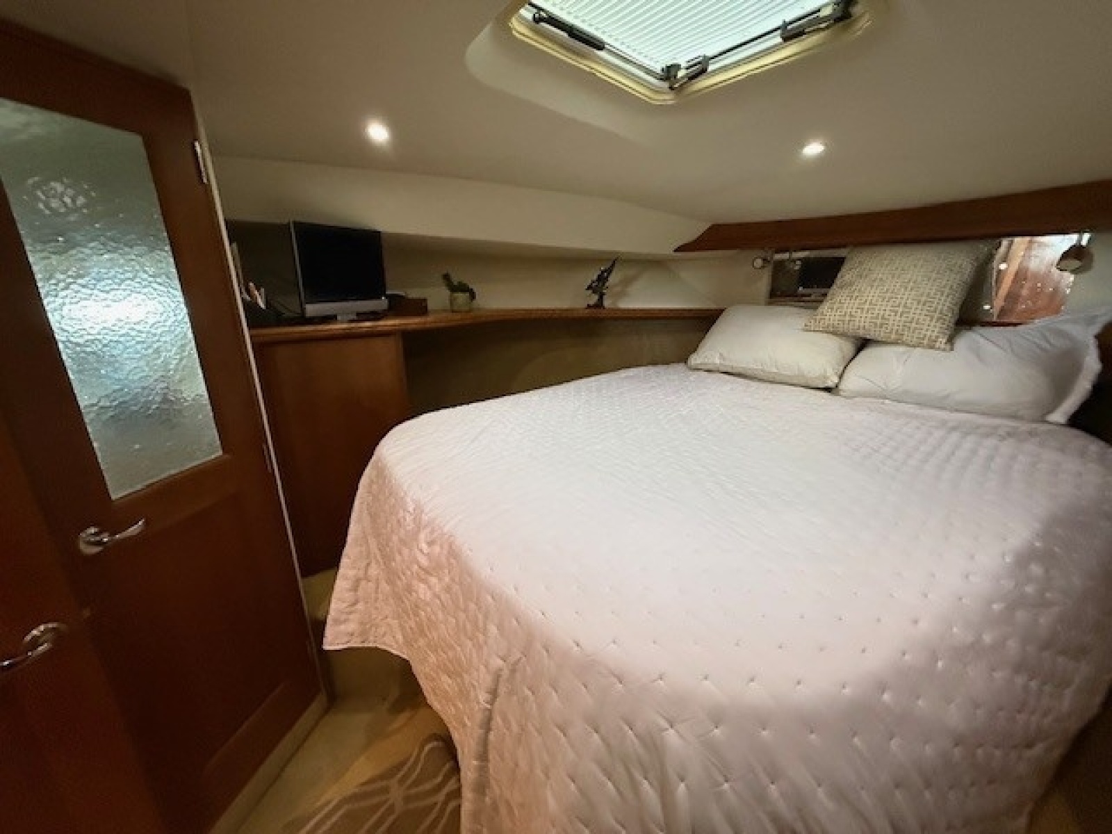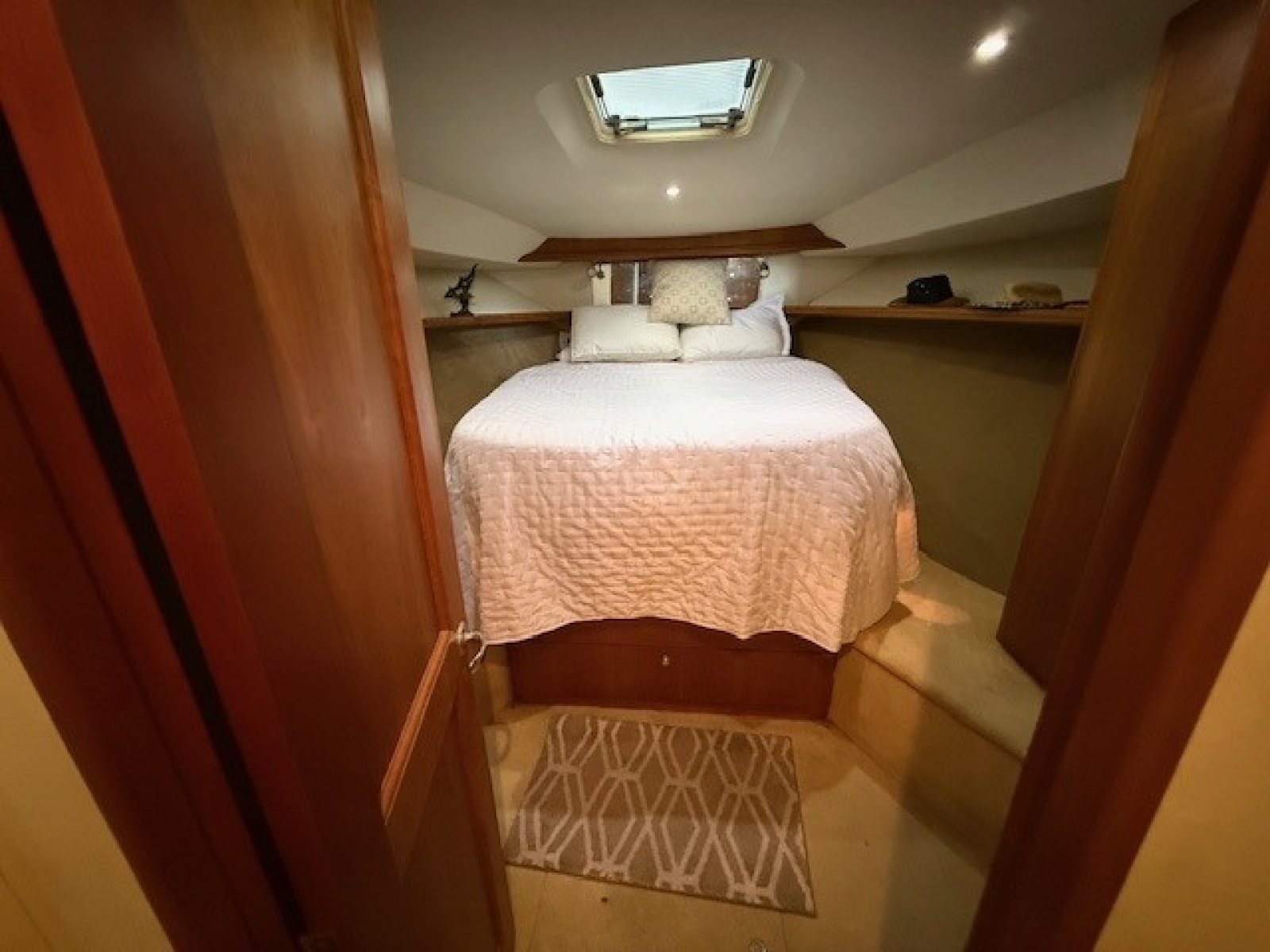 The master stateroom is located all the way forward in the vessel. Notable features: