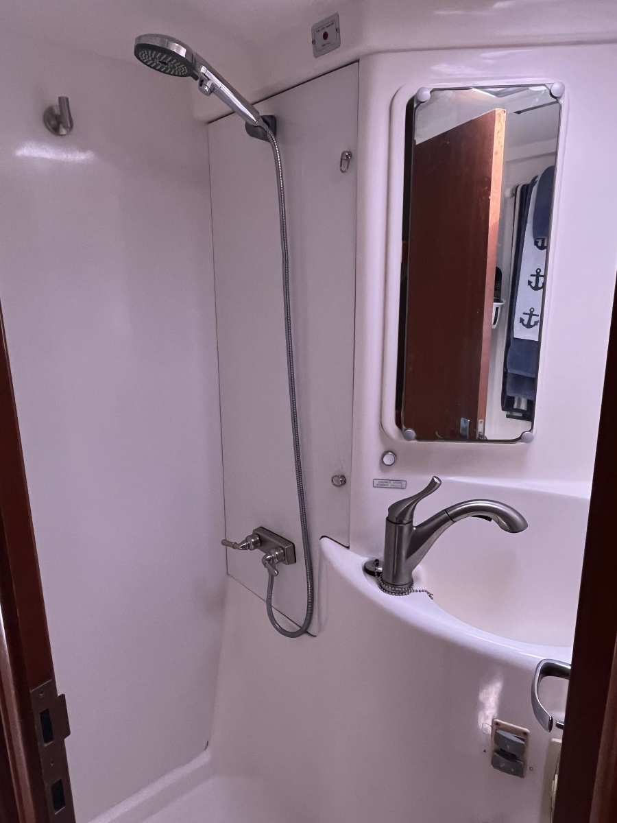 The vessel received a complete re-power in 2024 performed by Just Cats in Florida. Both engines are new Yanmar 4JH45 units rated at 45hp each, mated to SD-60 sail drives. Flexifold folding propellers were fitted at the same time, improving sailing performance by reducing drag under sail. Hours on both engines are low post re-power. New rudder bearings were also installed in 2024. The windlass was removed, serviced, reinstalled with a new mounting plate in 2025, and a spare windlass motor is included with the boat. No bow or stern thrusters are fitted.