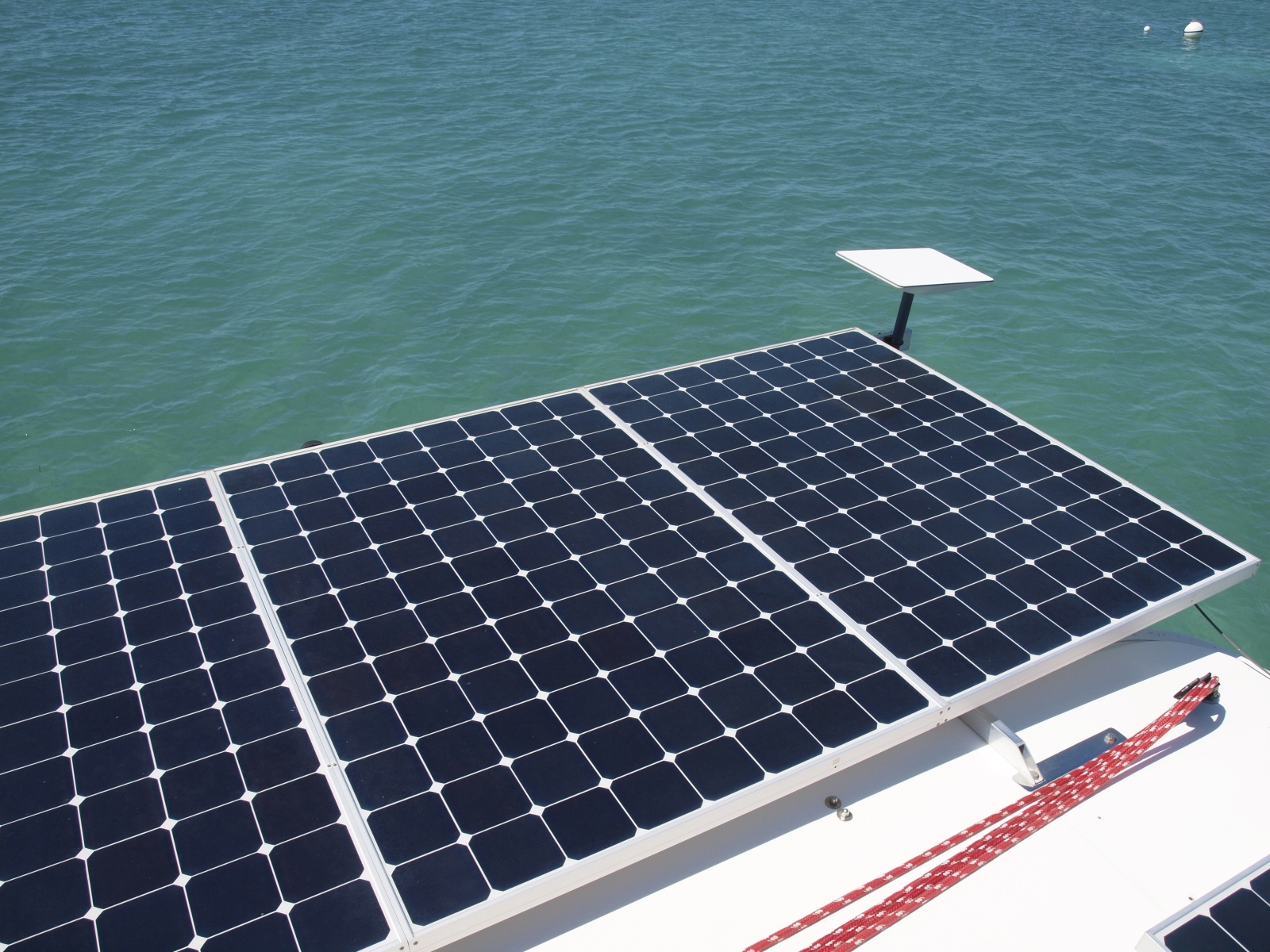 The vessel runs a full lithium electrical system with substantial solar generation capacity. Key components: