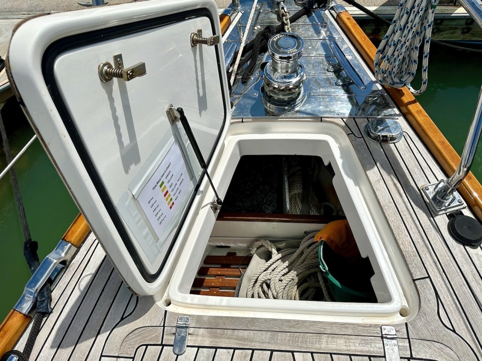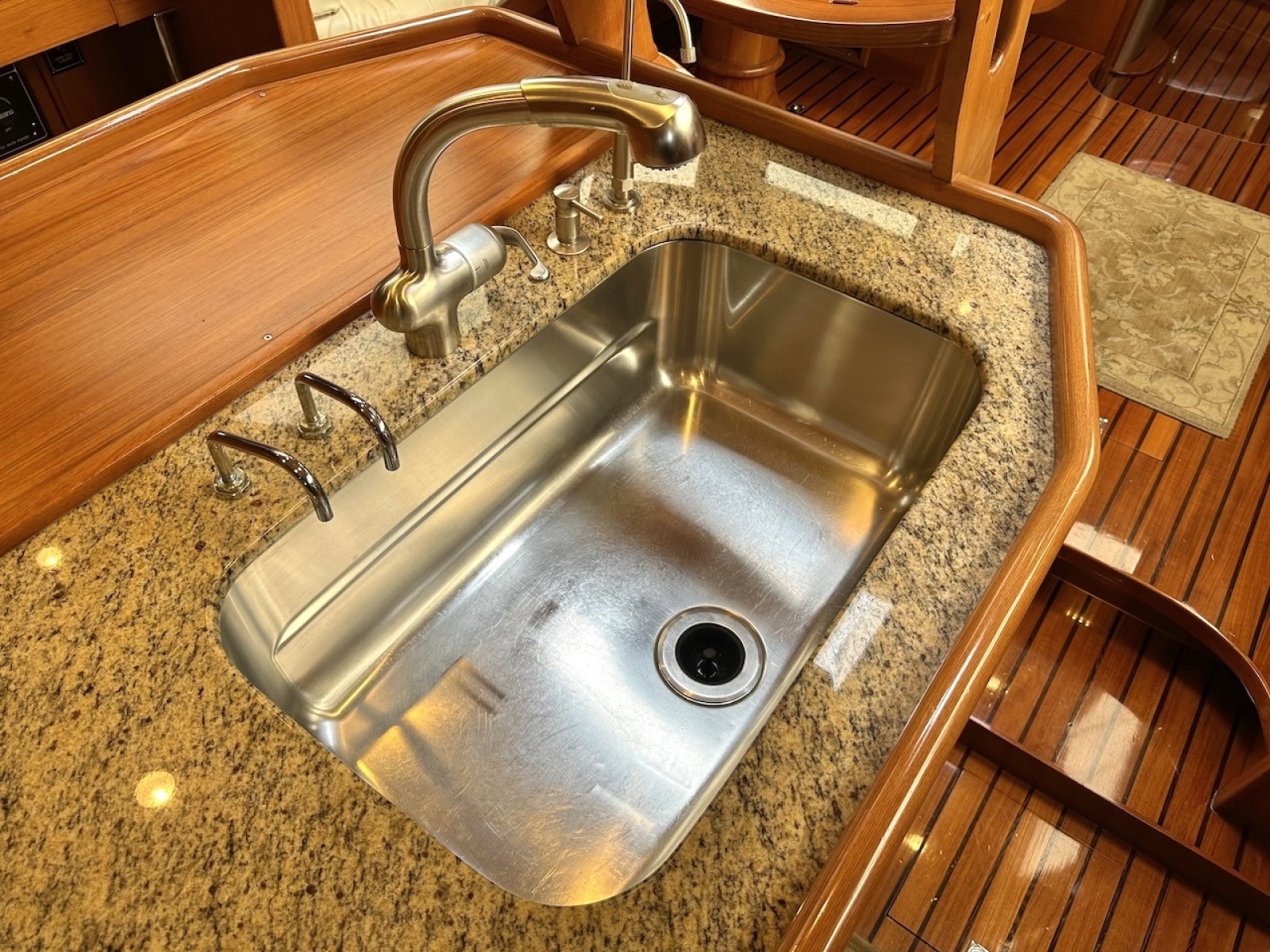 Daily onboard comfort is equally well supported, with dual freshwater pressure pumps, hot water via shore power or engine heat exchanger, gray water discharge for the galley, quality bronze seacocks throughout, and both fresh and saltwater foot pumps in the galley. Taken together, the plumbing arrangement on RELENTLESS is robust, practical, and very well suited to liveaboard or offshore use.