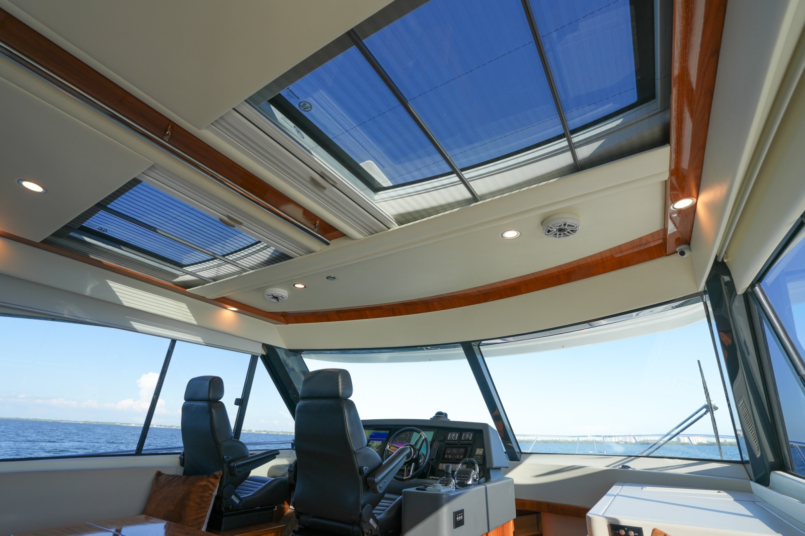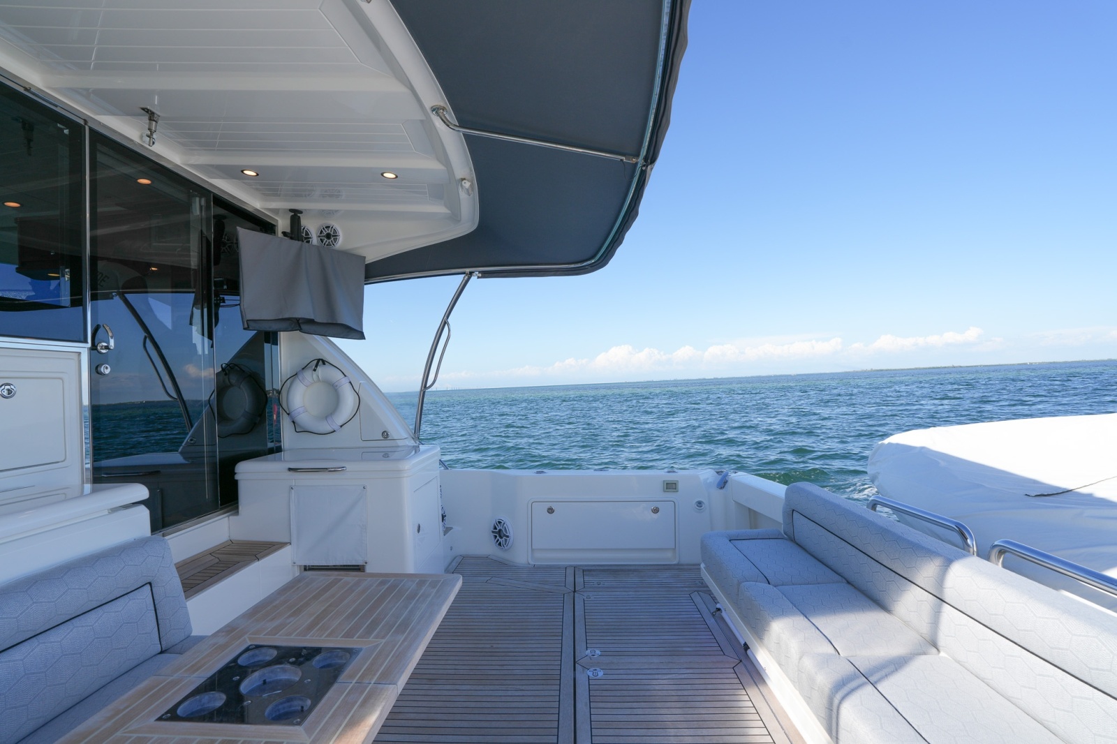 Expansive 360-degree panoramic views provide outstanding visibility, while the spacious salon-style settee creates a comfortable and social environment. Whether underway or at the dock, this elevated space ensures a relaxed, connected, and highly enjoyable cruising experience for all onboard.
