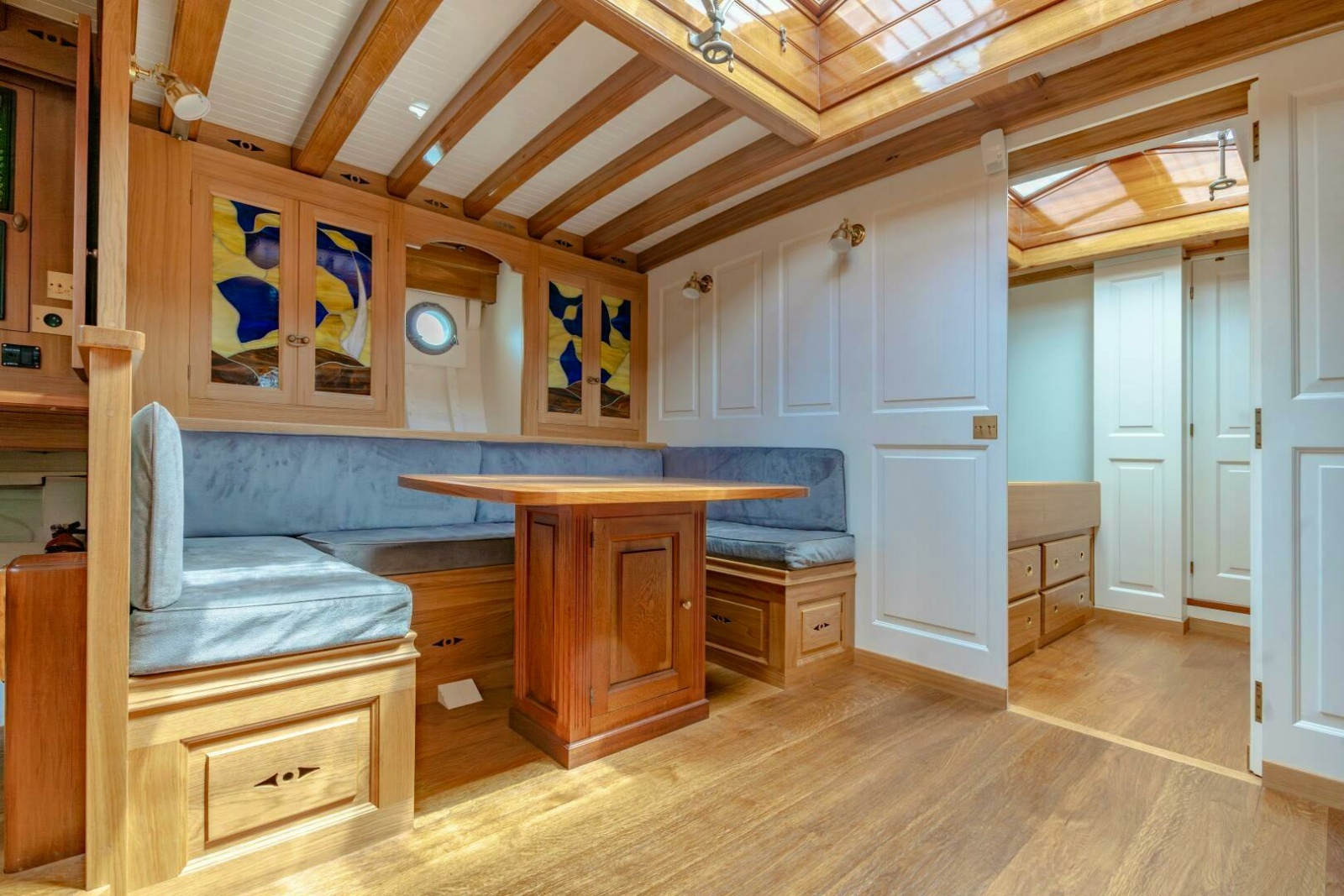 You can see all the new standing rigging which is stainless steel, the two original masts with all new sails, and then all the running rigging that was all replaced. There is nice space where to put a proper dining table when at the anchor or in an harbour somewhere.