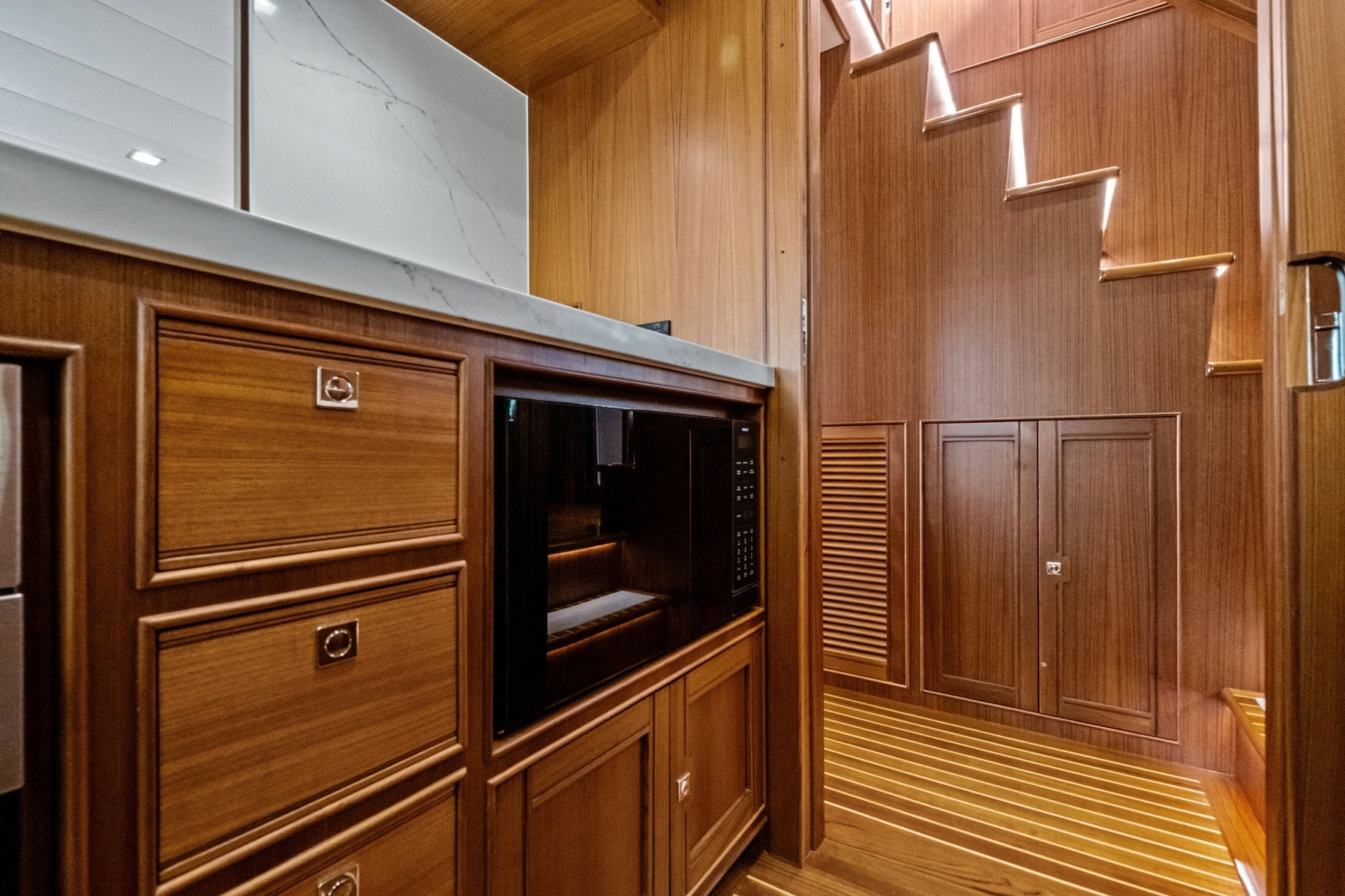 This 2024 90 Marlow Yacht - Artemis II, is arguably one of the best looking boats on the water, a real head turner that graces every dock with timeless elegance and a sporty pedigree. The 90V was designed for both a quick jaunt to a far off destination or a slow cruise between islands in the Bahamas. With an on deck Master and below deck master there are options for all preferences. Three additional guest staterooms, all having en-suite heads, have enough accommodations to bring the whole family. Crew accommodations in this vessels size range are second to none with a generous Queen bed Captains Quarters in the Aft pilothouse and three other bunks located below deck. No expense was spared in the outfitting of this boat in an effort to make life on the water easy for the crew and comfortable for the guests.