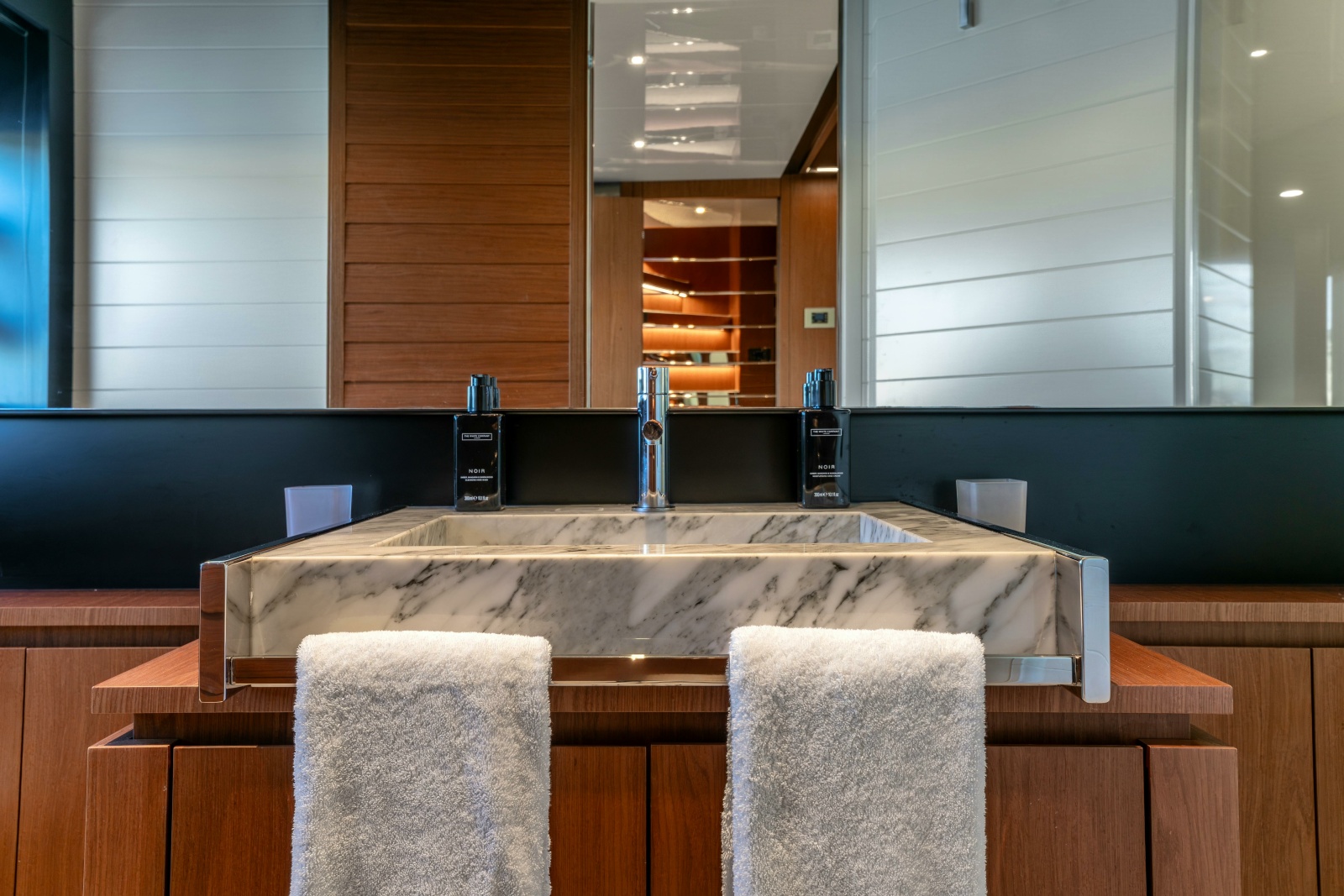 - Interior Finish: Italian walnut joinery with Calacatta Austral marble accents