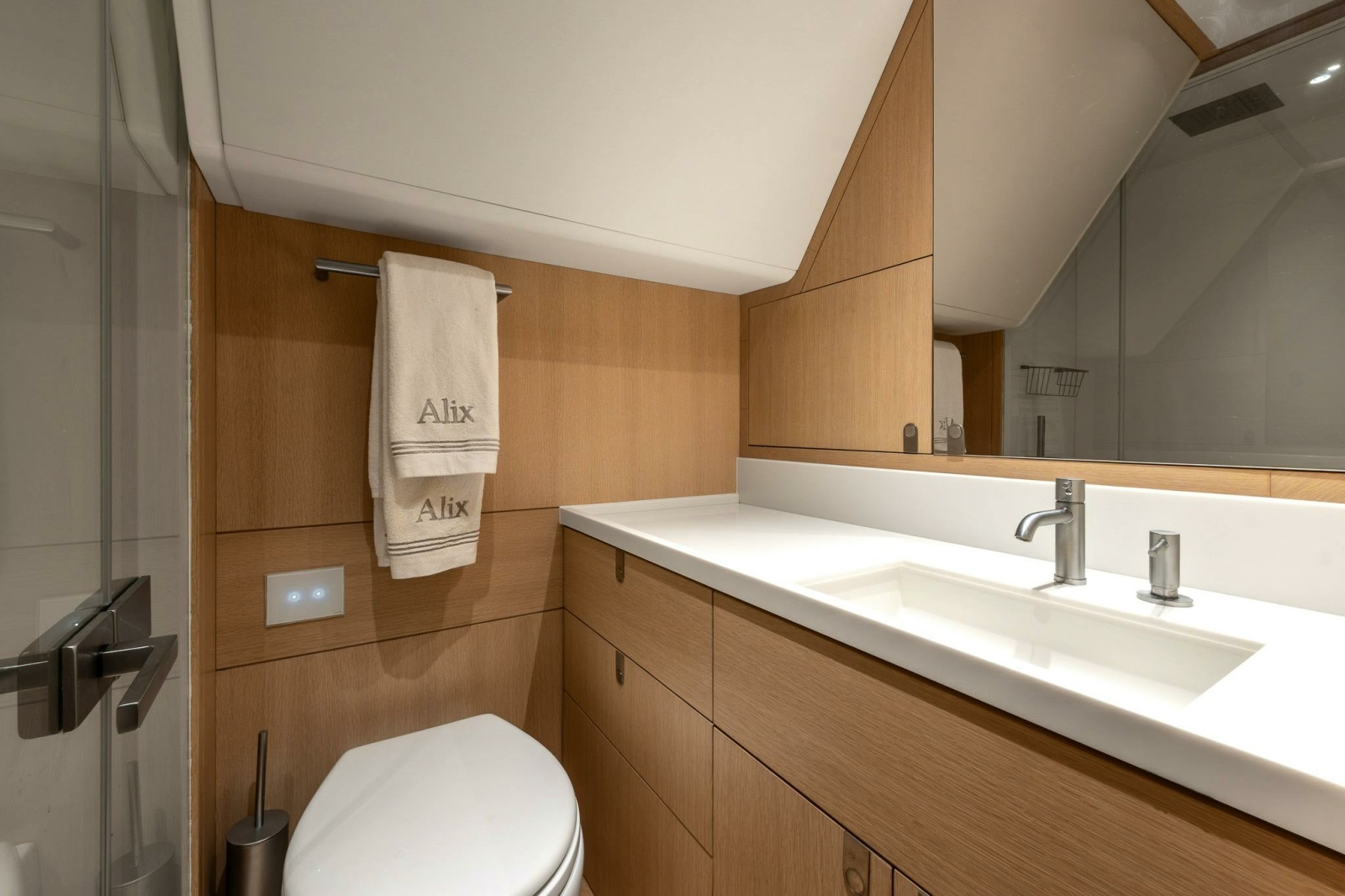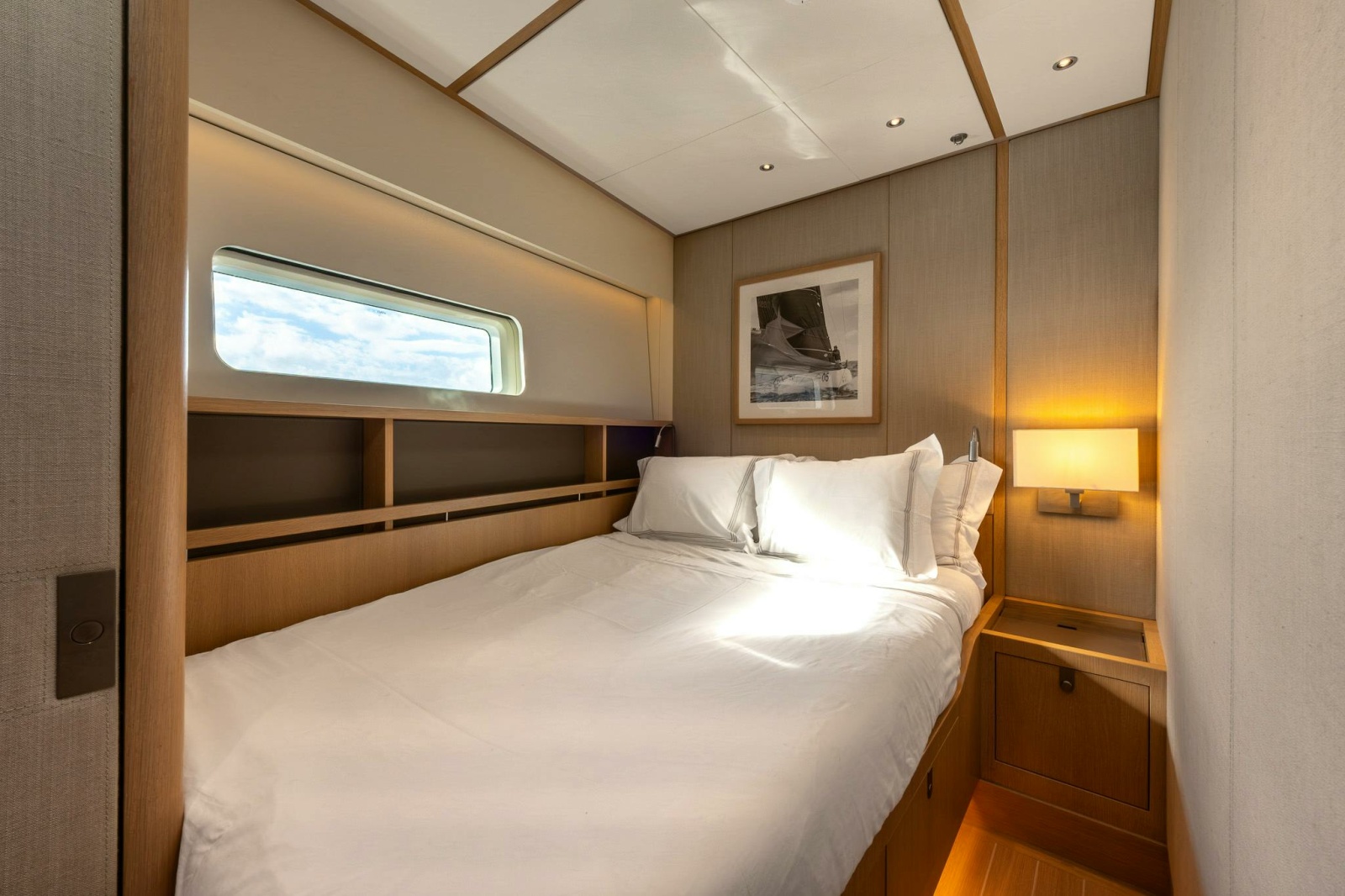 All cabins feature en-suite baths with rainfall showers, heated floors, and bespoke vanities—highlighting these as luxurious sanctuaries. Styling echoes the salon's Nordic-Italian fusion: light woods, crisp linens, and ocean-view portholes. |